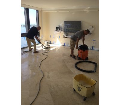 Renovation at 1450 Brickell Bay Drive. Bathroom Renovations, Impact Window Installation, Carpentry Work, Marble Floor Polishing